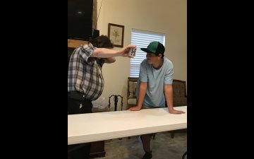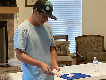 A potential new member, Daniel Parrish, tried his hand at fooling magicians. He demonstrated very good card manuvering and dexterity. I hope he becomes a member.