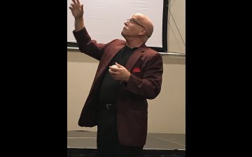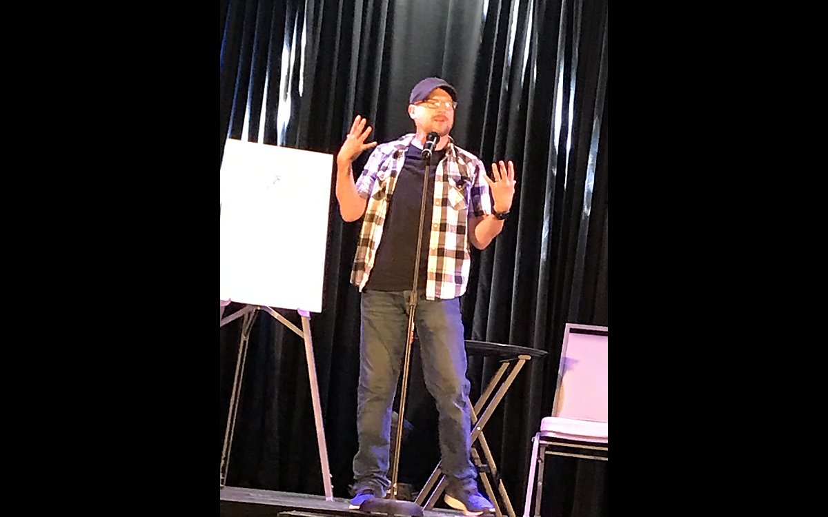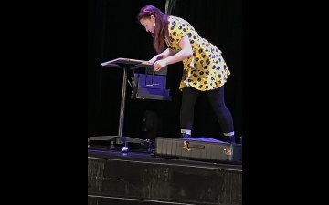 The performance that took him down! Volunteer was supposed to "touch the hand puppet monster". It took a few minutes for things to calm down and come back to normal.